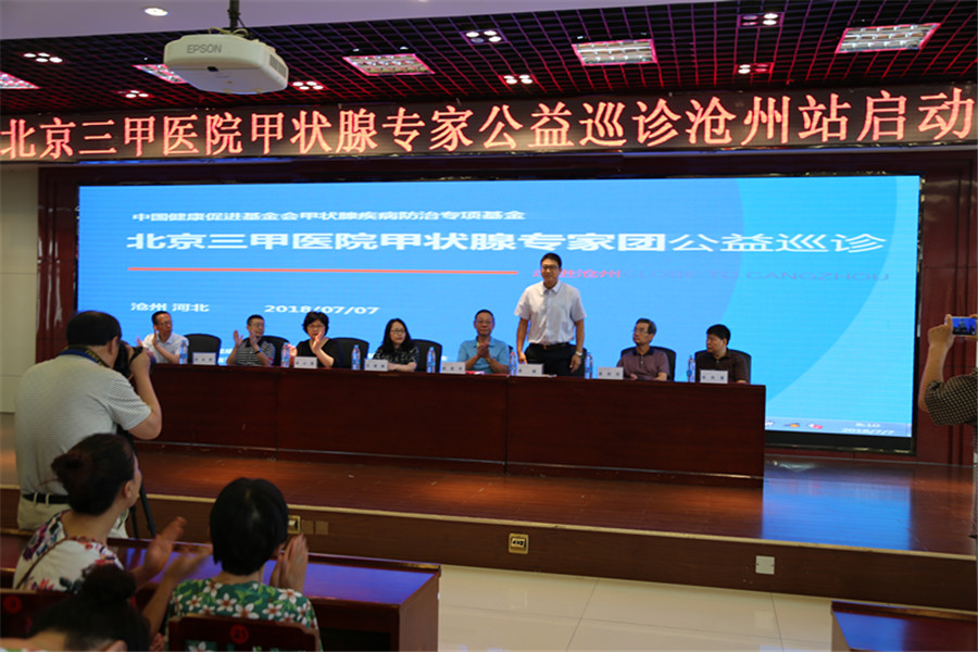 7月7日,由中国健康促进基金会甲状腺疾病防治专项基金主办,沧州市人民医院本部院区内分泌代谢科承办的中国健康促进基金会甲状腺疾病防治专项基金“北京三甲医院甲状腺医生公益巡诊沧州站”活动在沧州市人民医院启动。
